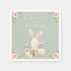 Cute pink watercolor bunny rabbit napkin personalized with name and number of year of birthday. As cute as can be for your little girls first birthday party. Sage green colour is adorable. Other party accessories available.