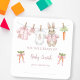 Cute Pink Bunny Girl Clothesline Book Plate Square Sticker