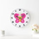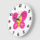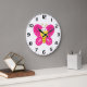 keep track of time with this whimsical pink butterfly wall clock featuring a large smiling cartoon character. the vibrant magenta wings and cheerful yellow face create a bright and happy focal point for a nursery, kitchen, or playroom. this nature-themed timepiece adds a playful and colourful aesthetic to your home decor, making it a wonderful gift for anyone who loves friendly garden creatures.
