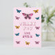 Cute Pink Butterfly Pattern Birthday Thank You Card. Thank your birthday guest with this butterfly-themed birthday cards perfect for a girl's birthday party! Featuring colourful butterflies this design add a magical touch to any celebration. Customize it with your child’s name and thank you note on the backside and make their day unforgettable!