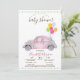 Cute Pink Car,Balloons Zigzag Baby Shower Invitation