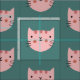Cute Pink Cat Green Pattern