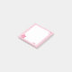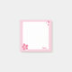 A pad of sticky notes with a pink border and cherry blossom and petal detailing.