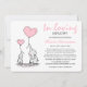 A funeral memorial invitation designed for a child, featuring two cute little gray elephants with pastel pink heart balloons on a clean white background, the child's name in script and an 'In loving memory' template that can easily be personalized.