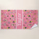 Cute Pink Christmas Flamingo and Pineapple Pattern Beach Towel