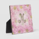 Cute Pink Daisy Custom Gold Initial Plaque. Pink girly girl initial floral sign. Gorgeous and baby doll cute with girly, girl pink flowers accented with yellow and white. Golden monogram initial sits atop a gold and translucent frame. Great for girly bedroom decor living space.