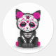 Cute Pink Day of the Dead Kitten Cat, white Classic Round Sticker