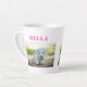 Cute dog photo latte mug with name in pink colour. Personalize this cute photo latte mug with your dog favourite photo and the name. You can use this latte mug template for any pet or any occasion.