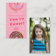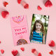 This modern and sweet Valentine's Day classroom photo card features a light pink background with doughnut illustrations on the front. The greeting on the front says "You're Sweet! along with your child's name and space to write in the recipient name. The back of the card has full frame vertical photo, which can also be removed if desired. This small size is perfect for classroom Valentine exchanges!
