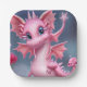 Cute Pink Dragon with Pink Flowers Paper Plate