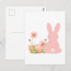 Cute Pink Easter Bunny with Spring Flowers Postcard