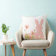 Cute Pink Easter Bunny with Spring Flowers Throw Pillow