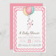 Cute Pink Elephant and Balloons Baby Shower Invitation