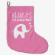 Cute light pink elephant 1st Christmas stocking for baby. Available in small and large size. Personalized design with custom name. Trendy Holiday decorations for newborn child. Make one for son, grandson, grandchild, daughter, granddaughter, nephew, niece etc. Customizable pastel colours with little animal silhouette and hearts.