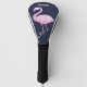 Cute Pink Flamingo on Dark Blue with Name Golf Head Cover