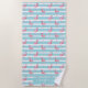 Cute pink flamingo pattern with blue stripes set on a white background pattern beach towel. Easy to personalize with your name!