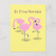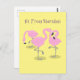 Cute pink flamingo trio cartoon illustration postcard