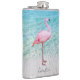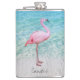 Cute Pink Flamingo Tropical Sandy Beach Fun Name Hip Flask