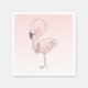 Paper napkins with a whimsical hand drawn pink flamingo.