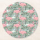 Cute Pink Flamingoes Palm Leafs Art Pattern Round Paper Coaster