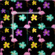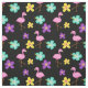 Cute Pink Flamingos and Flowers Black Fabric