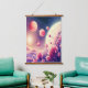 Cute Pink Floral Landscape Illustration In Space Hanging Tapestry