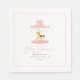 Cute pink flower-decorated pony carousel, paper napkin design for guests at your baby shower celebration.