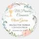Celebrate a special First Communion with this adorable sticker featuring delicate watercolor pink flowers and a cute chalice. Customize the message to add a personal touch to your First Holy Communion. Available in Spanish.