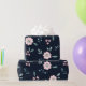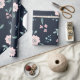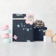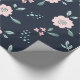 Cute pink flowers on navy background design wrapping paper