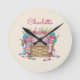 Cute Pink Fluffy Sock Monster Kids Design Round Clock