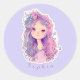 Cute pink girl 3, personalized classic round sticker