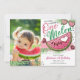 Cute Pink Green One In A Melon Birthday Photo Invitation