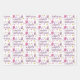 Cute Pink Happy Birthday Cupcakes, Stars and Heart Wrapping Paper Sheet