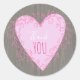 Cute Pink Heart With Doodle Frame on Wood Thank Yo Classic Round Sticker
