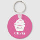 Cute pink kawaii cupcake design keychain with kids. Personalized ring key chain for children and adults. Add your own name or quote. Change quantity to get the cheap bulk price. Girly cup cake drawing with smiling face and rosy cheeks. Birthday gift ideas for her.