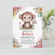 Cute Pink Kids Monkey 1st Birthday Party Invitation