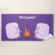 Cute pink marshmallows by camp fire cartoon beach towel