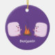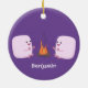Cute pink marshmallows by camp fire cartoon ceramic ornament