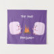 These cute pink marshmallows are warming themselves by the camp fire. Drawn in fun cartoon illustration style.