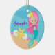 Personalize Dated Cute pink mermaid personalized Christmas Ornament set on a blue water background.