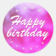 Cute Pink Metallic Star Girly Happy Birthday Classic Round Sticker