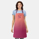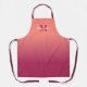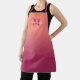 This apron features a cute pink gradient (from peachy to berry pink) with a customizable name and monogram at the top, and burgundy straps.