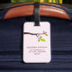 Cute and stylish luggage tag features a sweet vector illustration of an owl perched on a tree branch.