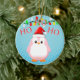 Cute Pink Penguin Santa Hat Christmas Lights Ceramic Ornament