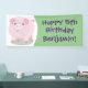 Cute pink pot bellied pig cartoon illustration banner