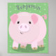 Cute pink pot bellied pig cartoon illustration poster