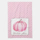 Cute Pink Pumpkin on Polka Dots Personalized Kitchen Towel