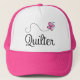 Quilter gift features a pretty pink butterfly design. Great quilting logo.
