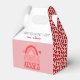 This adorable favour box design for Valentine's Day features trendy pink and red leopard hearts print pattern on the sides, a pink and red rainbow with hearts along with a typography text that says "Hugs & Kisses".