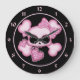 Cute pink skull and crossbones with polka dotted bow and hearts.